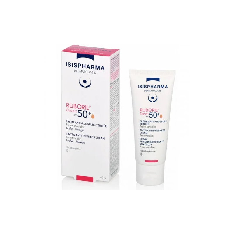 ISIS RUBORIL EXPERT M 50+ TEINTE, est conçue pour les peaux sensibles et réactives, offre une action anti-rougeurs et une protection SPF 50+ optimale contre