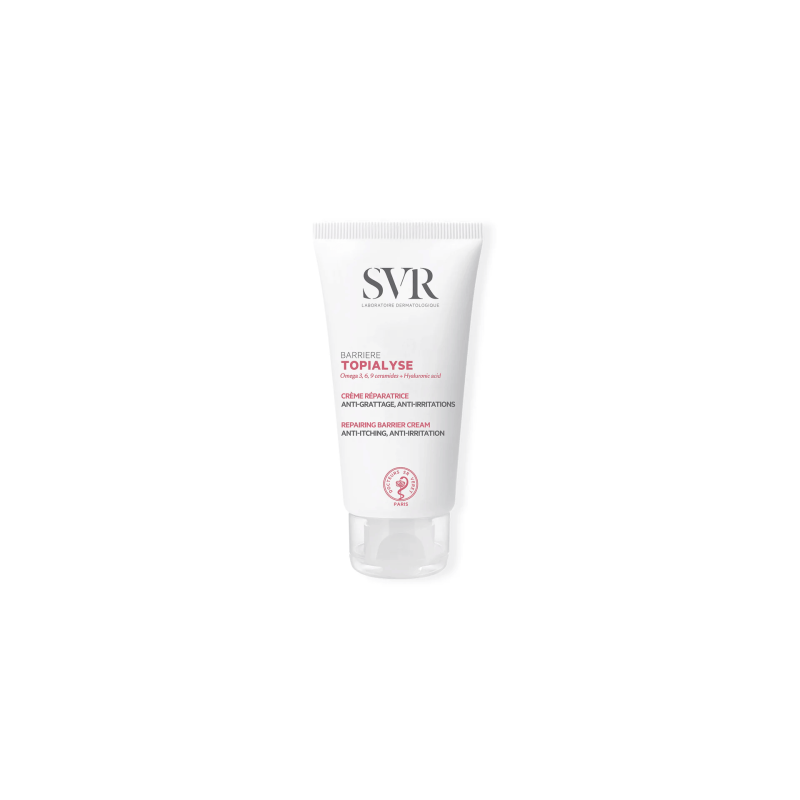 SVR TOPIALYSE CREME BARRIERE est une crème barrière qui protège et renforce la barrière cutanée. Elle contient des omégas 3, 6 et 9, de l'acide hyaluronique