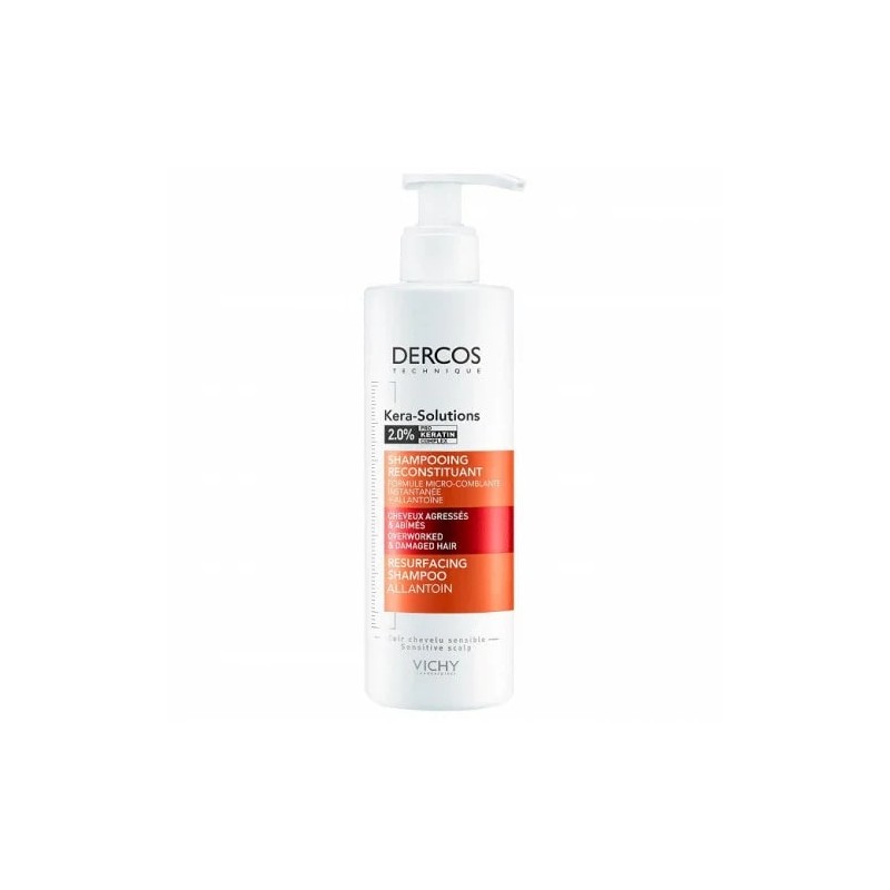 Shampooing Vichy Dercos Kera Solutions, Réparation capillaire, Cheveux abîmés, Complexe Pro-Kératine, Technologie micro-comblante, Allantoïne apaisante,