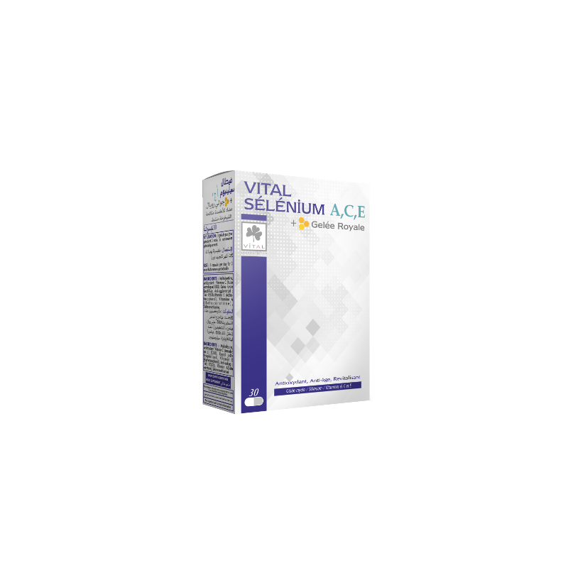Vital Selenium ACE 30 gélules des laboratoires Richelet est un complément alimentaire anti-âge conçu pour protéger les cellules de l’organisme contre le stress oxydatif et les radicaux libres. Sa formule associe des vitamines antioxydantes (A, C, E), du sélénium et du silicium, ainsi qu’une gelée royale de qualité, contenant 6 % de DHA.