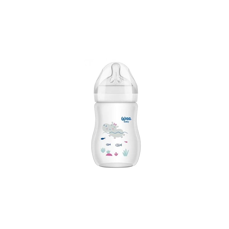 Le biberon Wee Baby Natural PP de 250 ml est équipé d'une tétine douce avec des canaux pour une flexibilité optimale. Son design inclut une housse étanche pour un transport facile. Il utilise un matériau sans BPA, avec une tétine de taille 1 (0-6 mois) et des tétines de rechange disponibles pour les groupes d'âge suivants. La tétine, en silicone lisse et transparent, offre une expérience sans goût ni odeur pour le bébé.