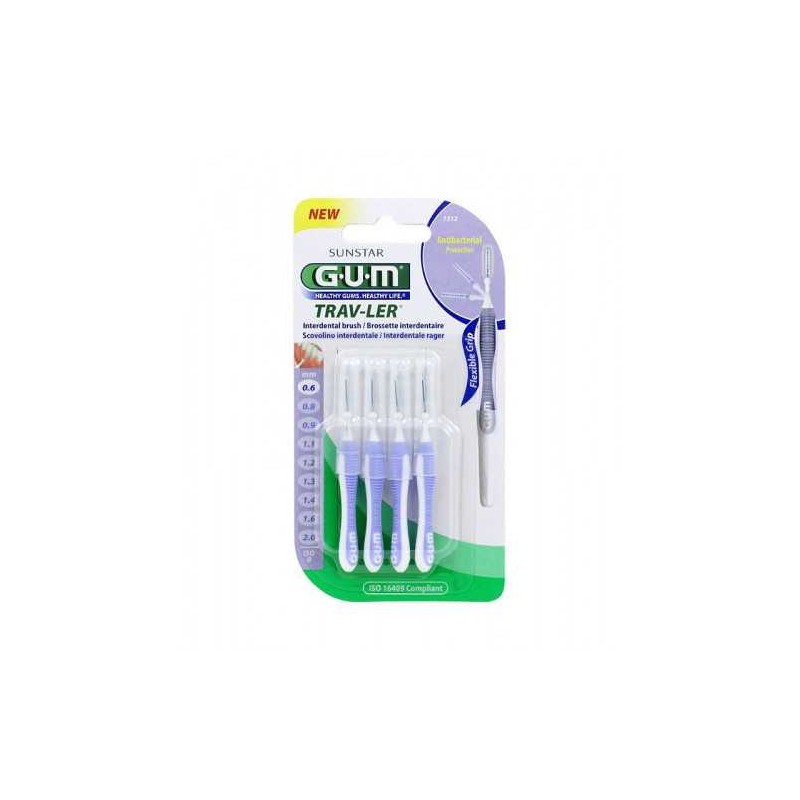 Confort et ergonomie uniques du manche, forme triangulaire, diamètre de passage entre les dents de 0,6 mm, blister de 4 brossettes.