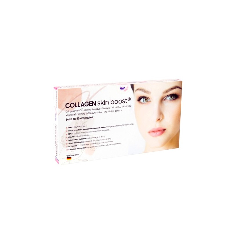 COLLAGEN SKIN BOOST contribue à éliminer les toxines qui fragilisent et encombrent les tissus de la peau, permettant de retrouver éclat et fraîcheur du teint. Il a été spécialement formulé pour aider les peaux sujettes à imperfections, mixtes à grasses, à se rééquilibrer et à retrouver leur netteté naturelle.