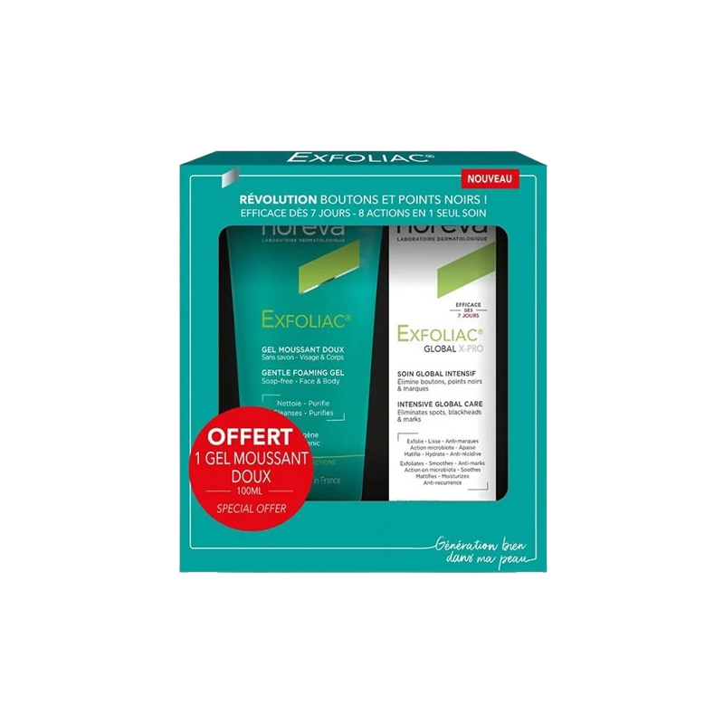 NOREVA EXFOLIAC GLOBAL 6 SOIN GLOBAL INTENSIF 30 ML + GEL MOUSSANT DOUX 100 ML OFFERT