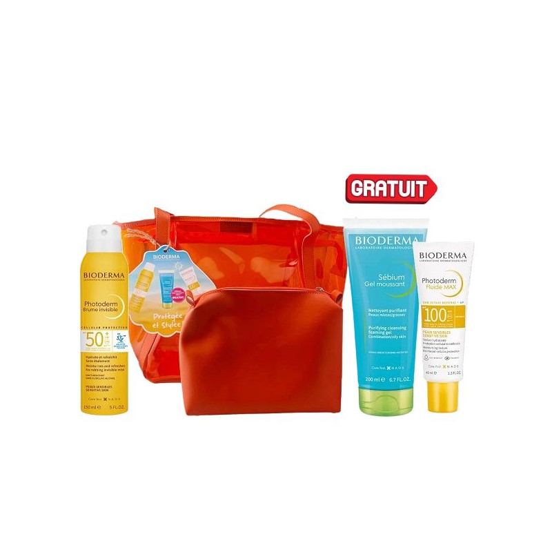 BIODERMA – SAC PHOTODERM BRUME INVISIBLE SPF50+ 150ML+FLUIDE MAX SPF 100 40ML+SEBIUM GEL MOUSSANT 100ML OFFERT