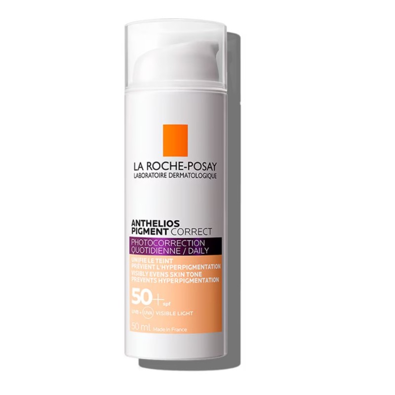 LA ROCHE-POSAY ANTHELIOS PIGMENT CORRECT SPF 50+ 50ML est une crème solaire anti-taches qui associe très haute protection et correction du teint. Conçue pour prévenir le photovieillissement et l’hyperpigmentation causés par l’exposition quotidienne aux UV, elle intègre la technologie exclusive CELLOX-B3 TECH et des actifs dermatologiques reconnus : Niacinamide et Procerad.