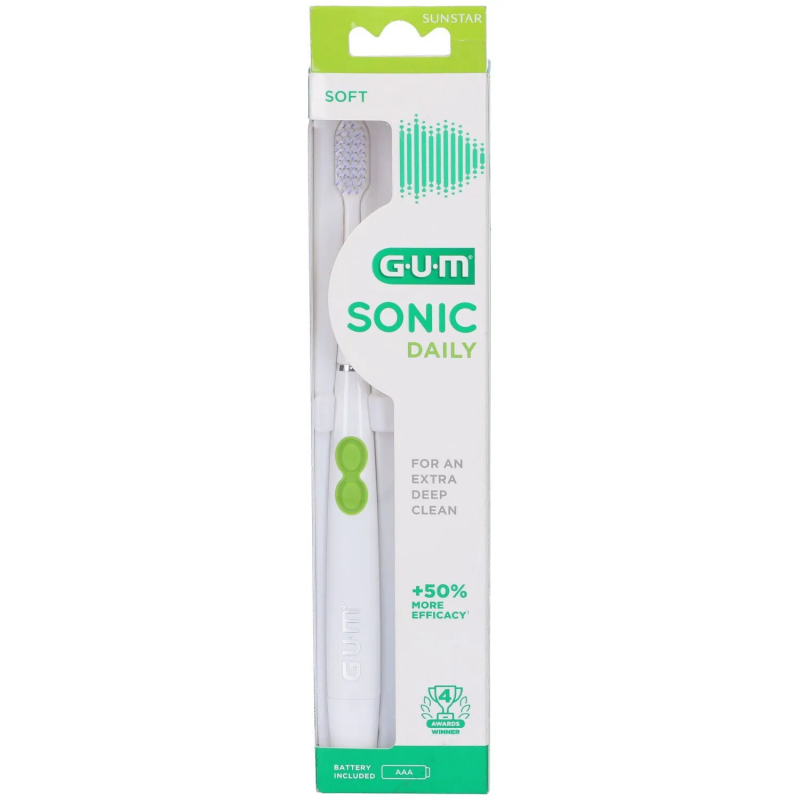Prévenez les problèmes bucco-dentaires avec Gum Brosse à Dents Electrique N°4100 Sonic Daily Soft Blanche.