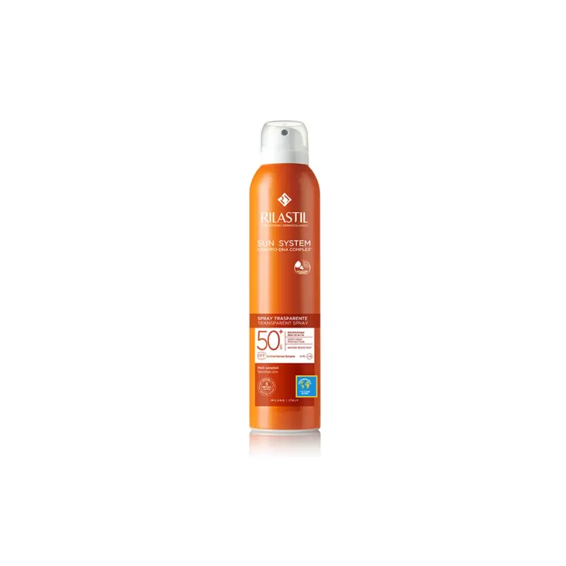 Sun System Transparent Spray SPF50+ est un spray corporel transparent finement nébulisé.