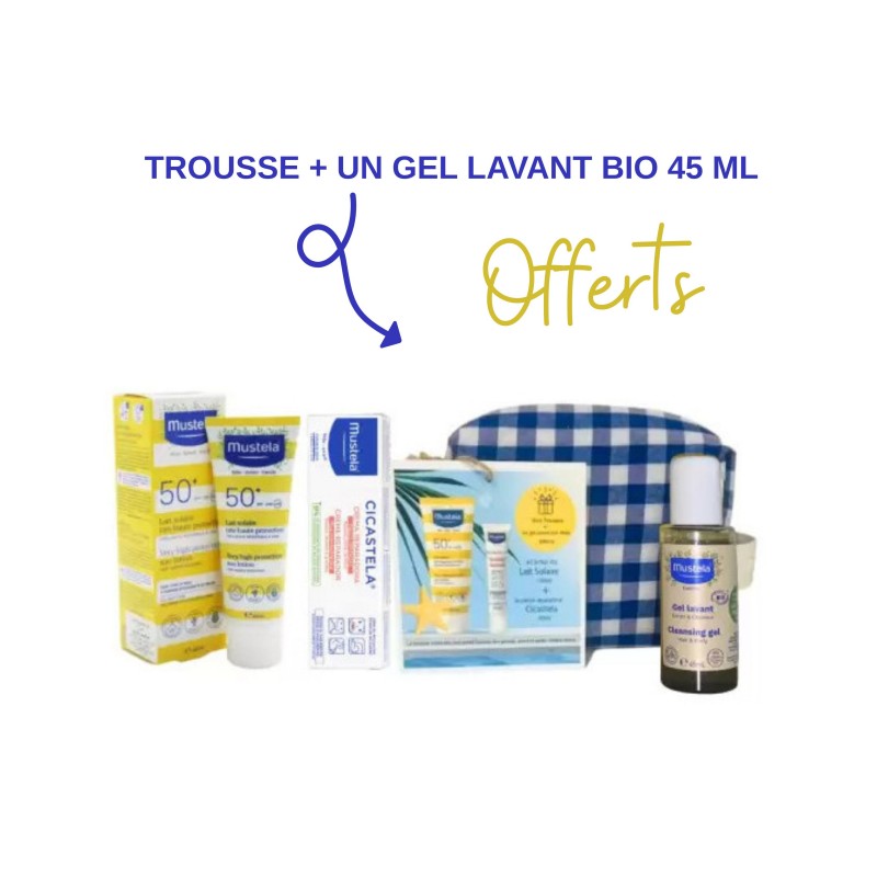 MUSTELA TROUSSE BLEU LAIT SOLAIRE 100ML+CICASTELA CREME REPARATRICE 40ML+GEL LAVANT BIO 45ML (OFFERT)