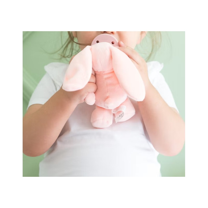 Le doudou doux et léger empêche la tétine de rouler par terre et la garde à portée de bébé.