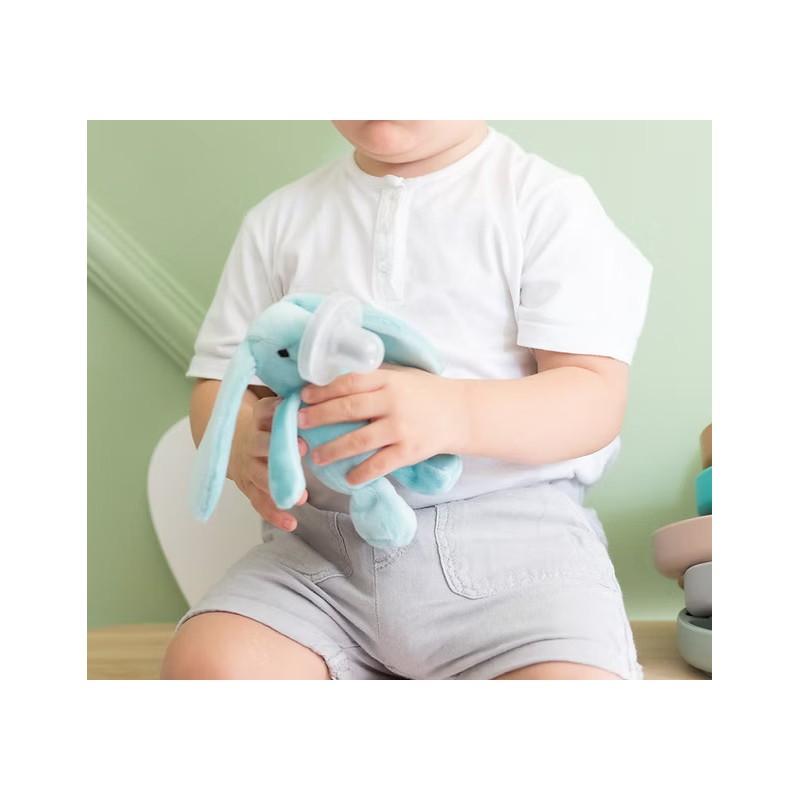 Le doudou doux et léger empêche la tétine de rouler par terre et la garde à portée de bébé.