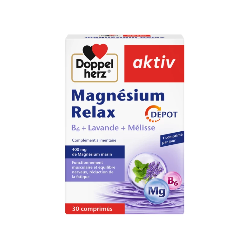Doppelherz aktiv Magnésium Relax combine le magnésium avec les vitamines B6, B1 et la niacine, pour soutenir le système nerveux et réduire la fatigue. La vitamine D, quant à elle, agit en synergie avec le magnésium pour contribuer à une fonction musculaire normale.