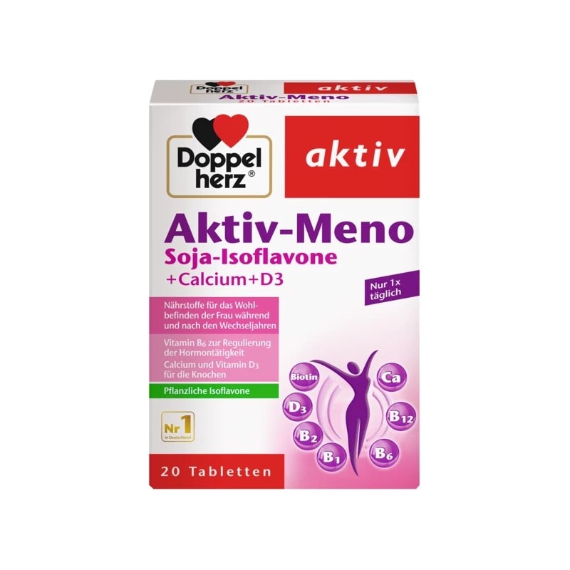 Aktiv-Meno, Doppelherz, Calcium, Vitamines B, Vitamine D3, Isoflavones de soja, Ménopause, Bien-être, Besoins nutritionnels spécifiques, Bouffées de chaleur,