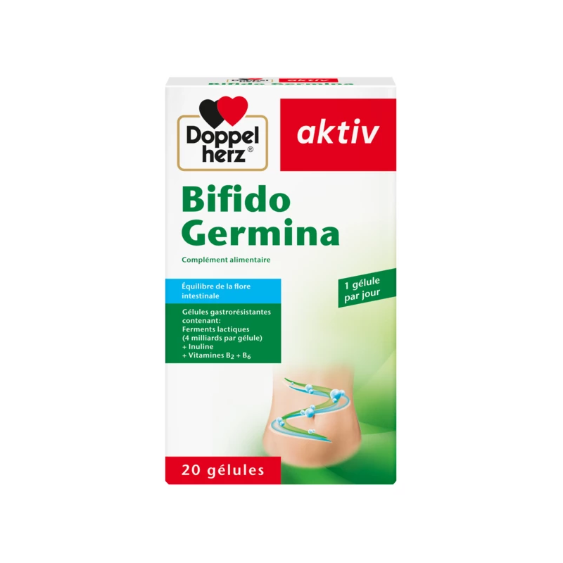 Les gélules Doppelherz Bifido Germina contiennent deux souches de Bifidobactéries et trois souches de Lactobacilles soigneusement sélectionnées pour :