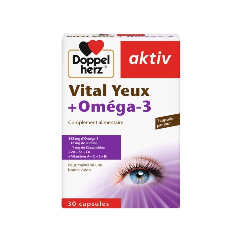 AKTIV Vital Yeux+Oméga-3 est un produit présentant une formule riche en Oméga-3 (DHA + EPA) ainsi qu'en caroténoïdes, conçue pour favoriser la santé oculaire