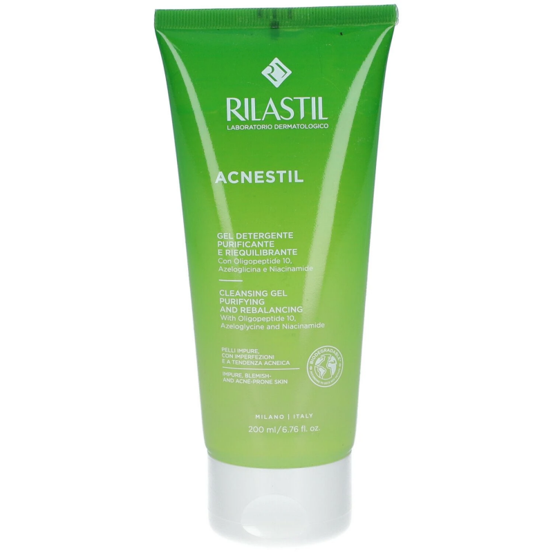 Rilastil Acnestil Gel Nettoyant Anti-Imperfections 200 ml Gel nettoyant indiqué pour les peaux mixtes, grasses et à tendance acnéique .Purifiant et rééquilibrant des peaux à impuretés et imperfections.Enrichi en actifs spécifiques qui purifient la peau sans appauvrir sa couche hydrolipidique.